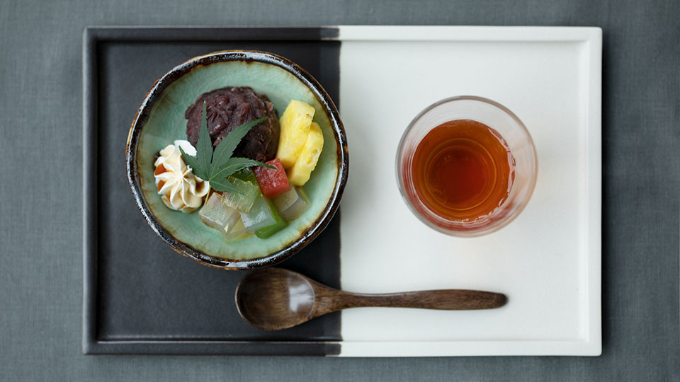 寒天やフルーツ、あんこ、生クリームや黒蜜をお好みでトッピング。朝食のデザートにぴったりの甘味です。