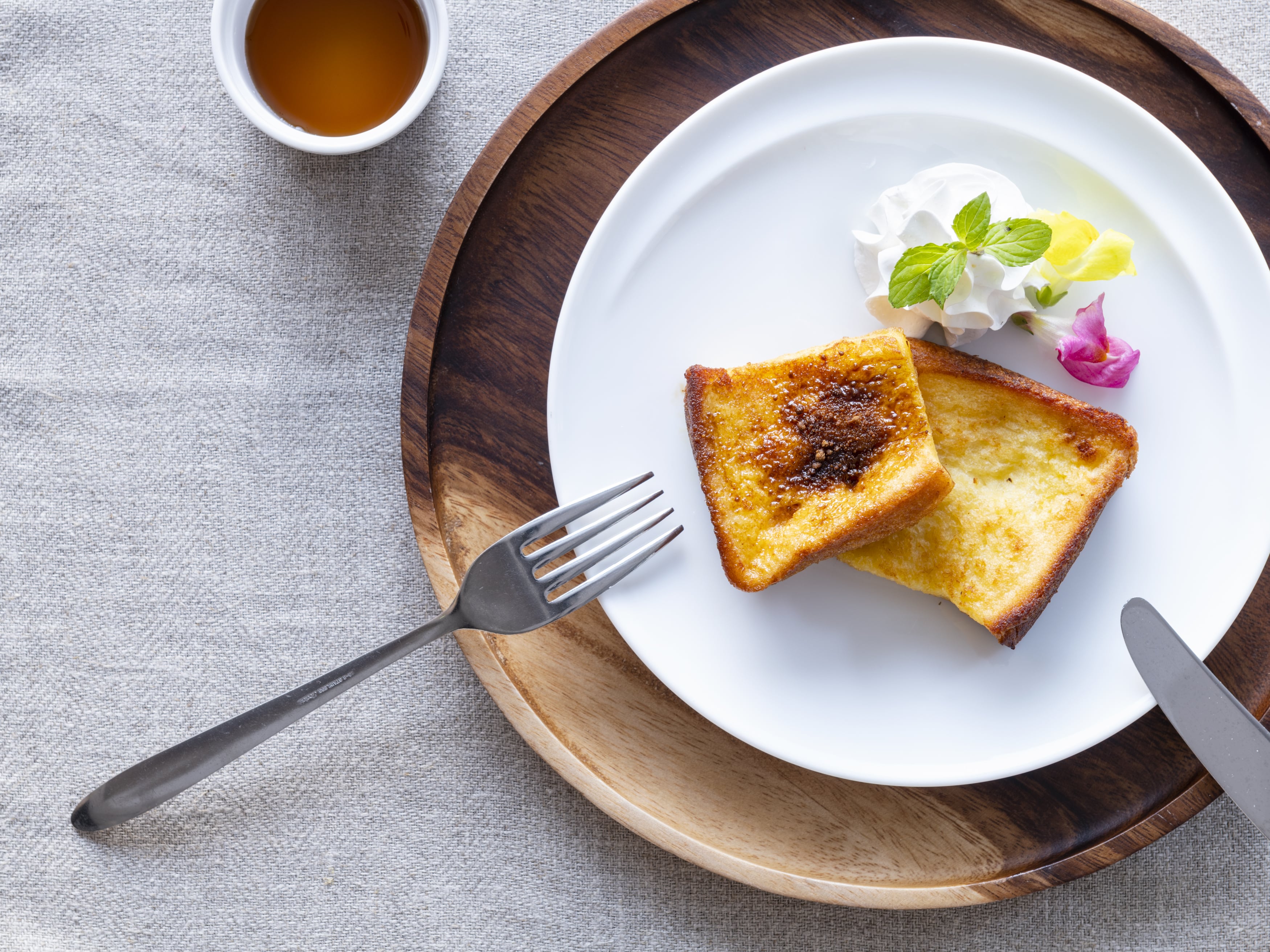 外はカリっと、中はふんわりなめらか。パンに染み込ませた卵液のまろやかな甘さとバターの風味が心地よい人気メニューです。